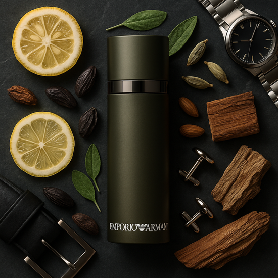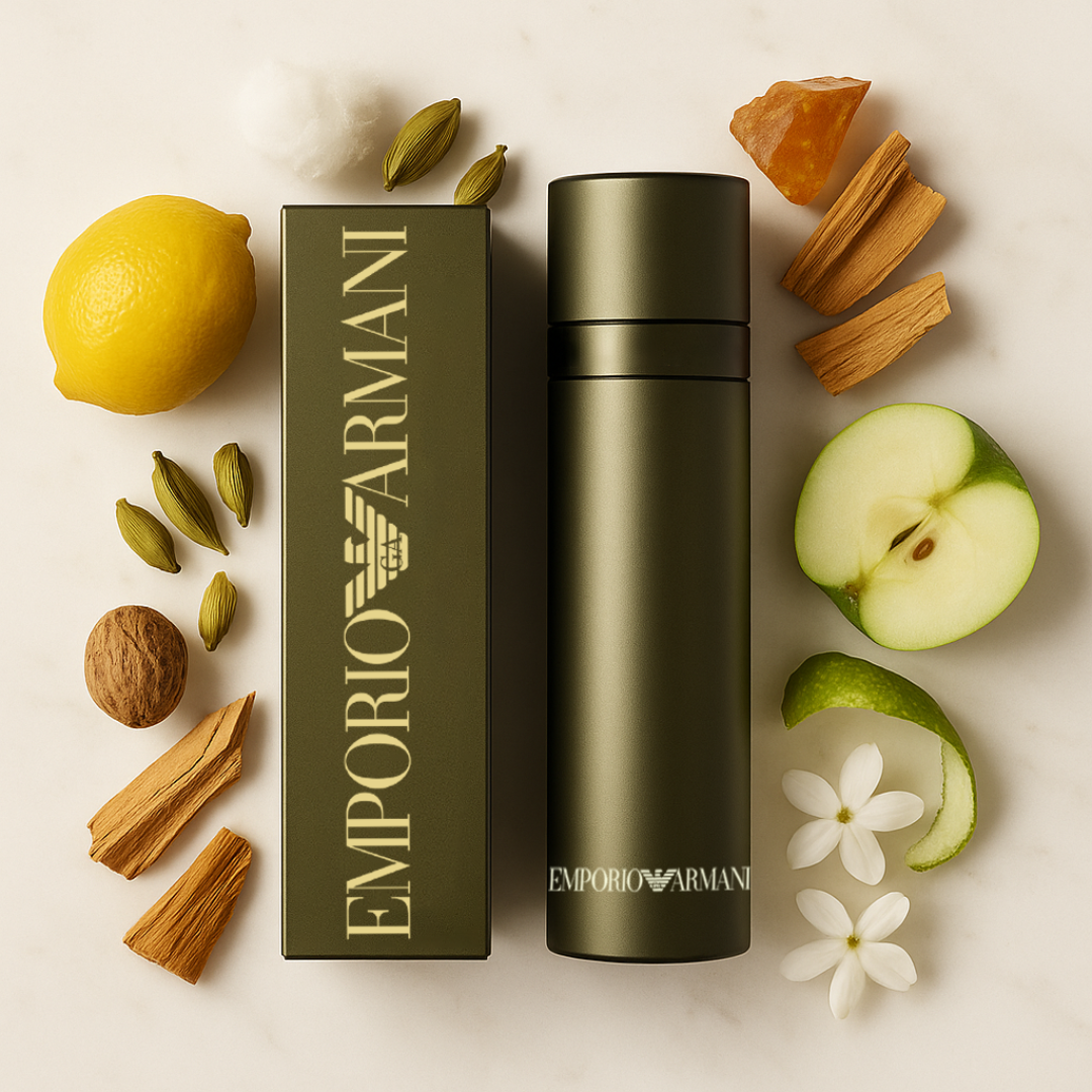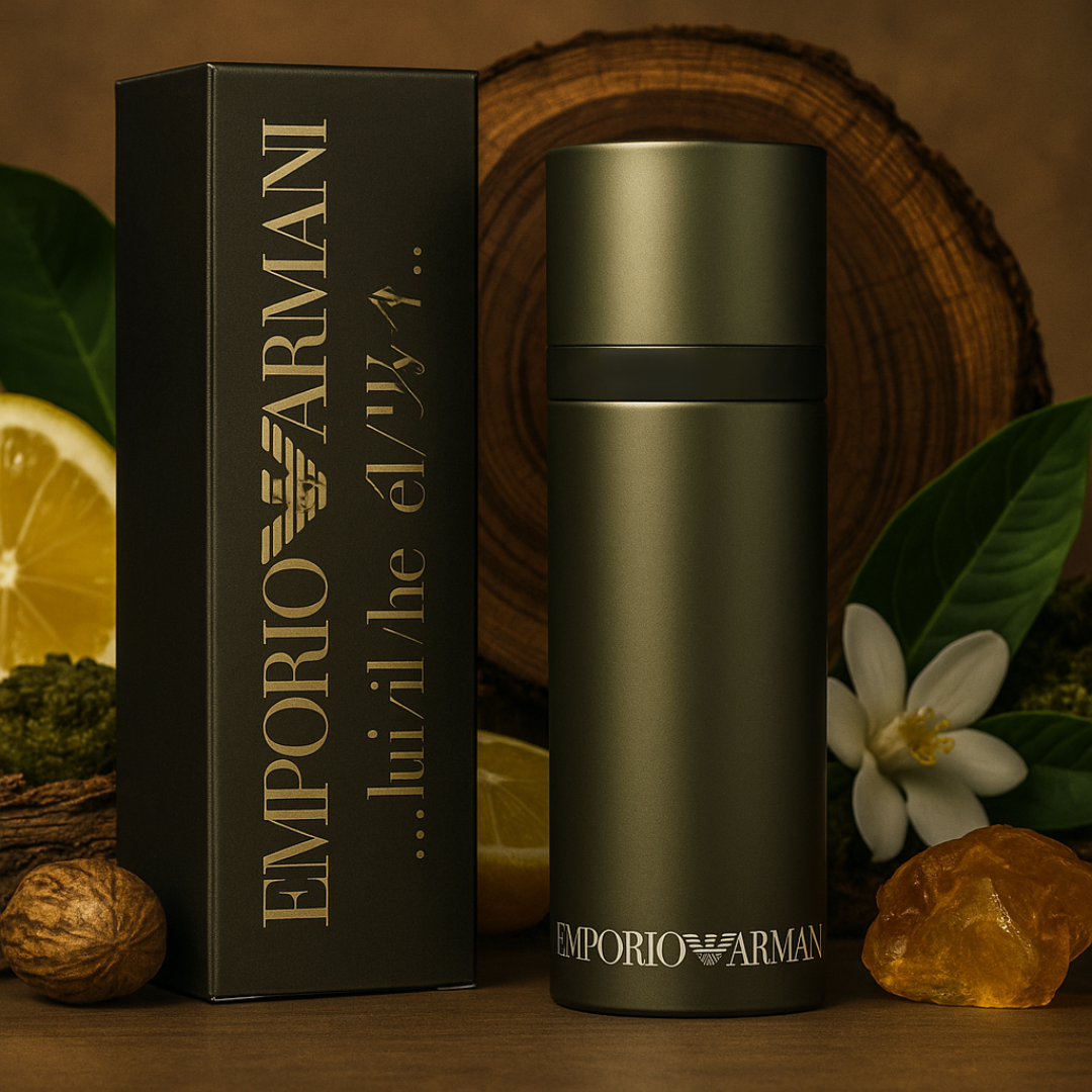 Emporio Armani He de Giorgio Armani pertenece a la familia olfativa Amaderada Oriental y representa la elegancia discreta y moderna del hombre contemporáneo. Abre con una fusión fresca y vibrante de salvia, yuzu, manzana, bergamota, limón, piña, mandarina y cardamomo, que aportan energía y vitalidad. En el corazón, notas refinadas de nuez moscada, raíz de lirio, jazmín, ciclamen y rosarevelan un equilibrio entre sofisticación y naturalidad. El fondo de sándalo, musgo de roble, cedro, haba tonka, almizcle y ámbar deja una estela cálida, envolvente y atemporal. Una fragancia versátil, elegante y seductora, ideal para el hombre que combina fuerza interior con estilo relajado.