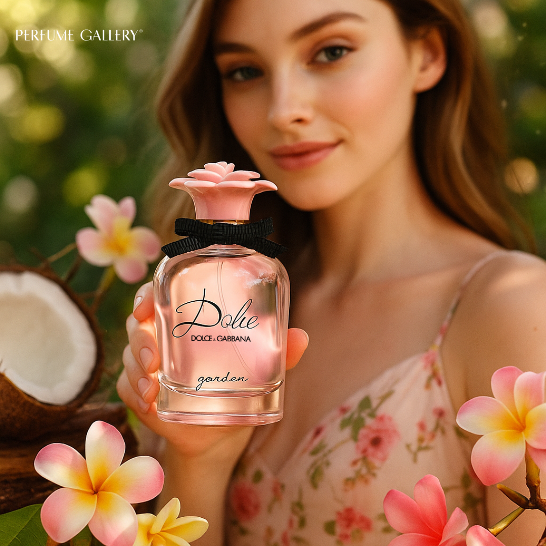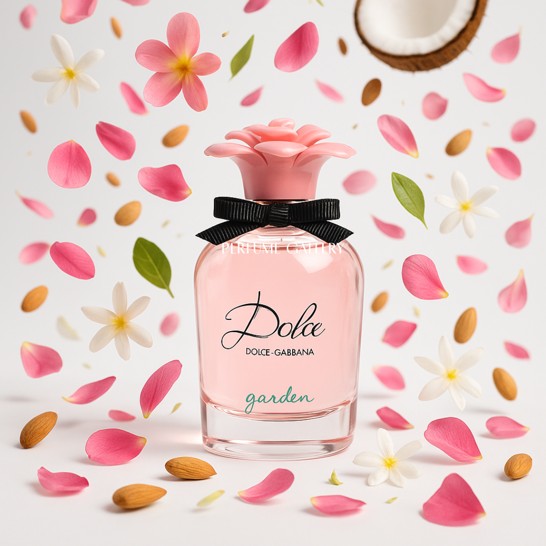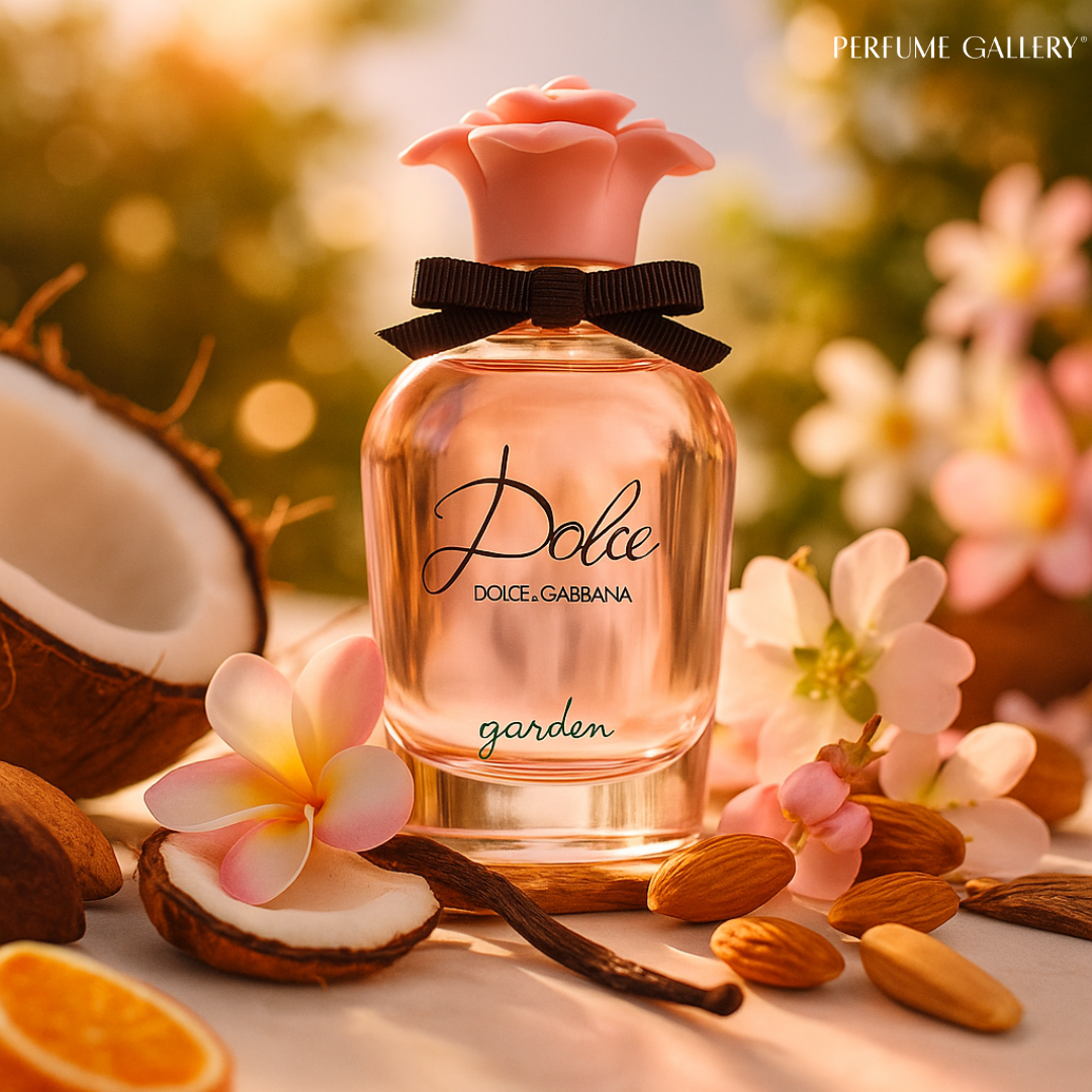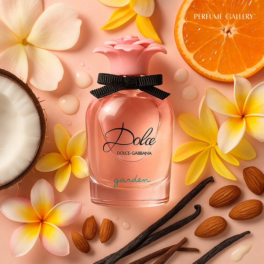 Dolce Garden de Dolce & Gabbana pertenece a la familia olfativa Floral Gourmand y celebra la alegría y feminidad del Mediterráneo en plena floración. Abre con una mezcla luminosa de mandarina, neroli y magnolia, que aporta frescura solar y suavidad. En el corazón, florecen la frangipani, el ylang-ylang y el coco, creando un acorde cremoso, floral y exótico. El fondo de vainilla, almizcle y maderas de sándalo envuelve la piel con calidez, elegancia y dulzura delicada. Una fragancia radiante y sensual que evoca la esencia de un jardín siciliano bañado por el sol.