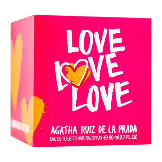 Love Love Love de Agatha Ruiz de la Prada es una fragancia de la familia olfativa Almizcle Floral Amaderado para Mujeres. Love Love Love se lanzó en 2011. Las Notas de Salida son casis (grosellero negro), mandarina y bergamota; las Notas de Corazón son zarzamora (frambuesa negra), rosa y jazmín; las Notas de Fondo son almizcle y sándalo.