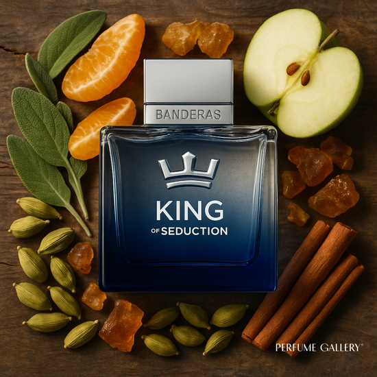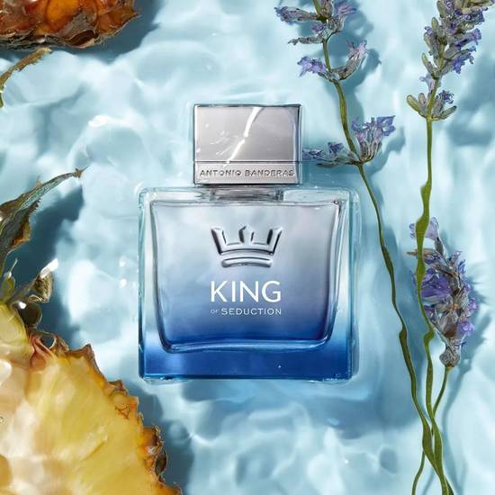King of Seduction de Antonio Banderas pertenece a la familia olfativa Amaderada Aromática y combina frescura, elegancia y magnetismo natural. Abre con notas vibrantes de toronja, bergamota, piña, melón y un toque chispeante de manzana verde, que aportan energía y vitalidad. En el corazón, la cardamoma, el neroli, el jazmín y el almizcle marino añaden una faceta sofisticada y refrescante. El fondo de ámbar, vetiver, cedro, almizcle blanco y gamuza deja una estela cálida, sensual y profundamente masculina. Una fragancia moderna y equilibrada que refleja el carisma y la confianza del hombre que conquista con naturalidad.