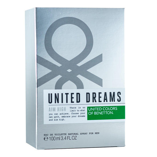 United Dreams Men Aim High de Benetton es una fragancia de la familia olfativa Amaderada Aromática para Hombres. United Dreams Men Aim High se lanzó en 2015. Las Notas de Salida son toronja (pomelo), naranja amarga y limón (lima ácida); las Notas de Corazón son salvia, menta, geranio y nuez moscada; las Notas de Fondo son vetiver, pachulí, musgo y ámbar.
